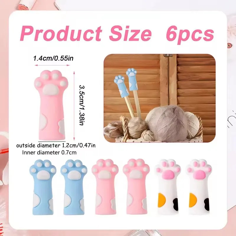 6Pcs Cute Cat Paw Knitting Needle Stoppers – Silicone Protectors for DIY Sewing
