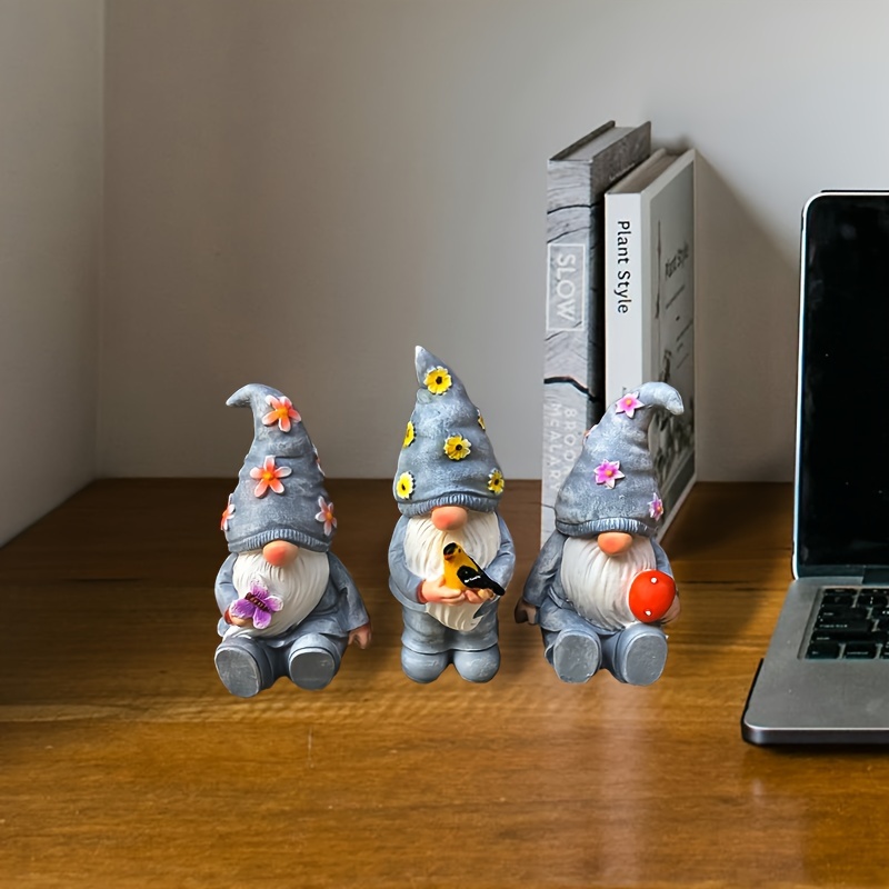 • Resin Gnome Garden Statue Set – 3-Piece Rustic Style for Indoor & Outdoor Use