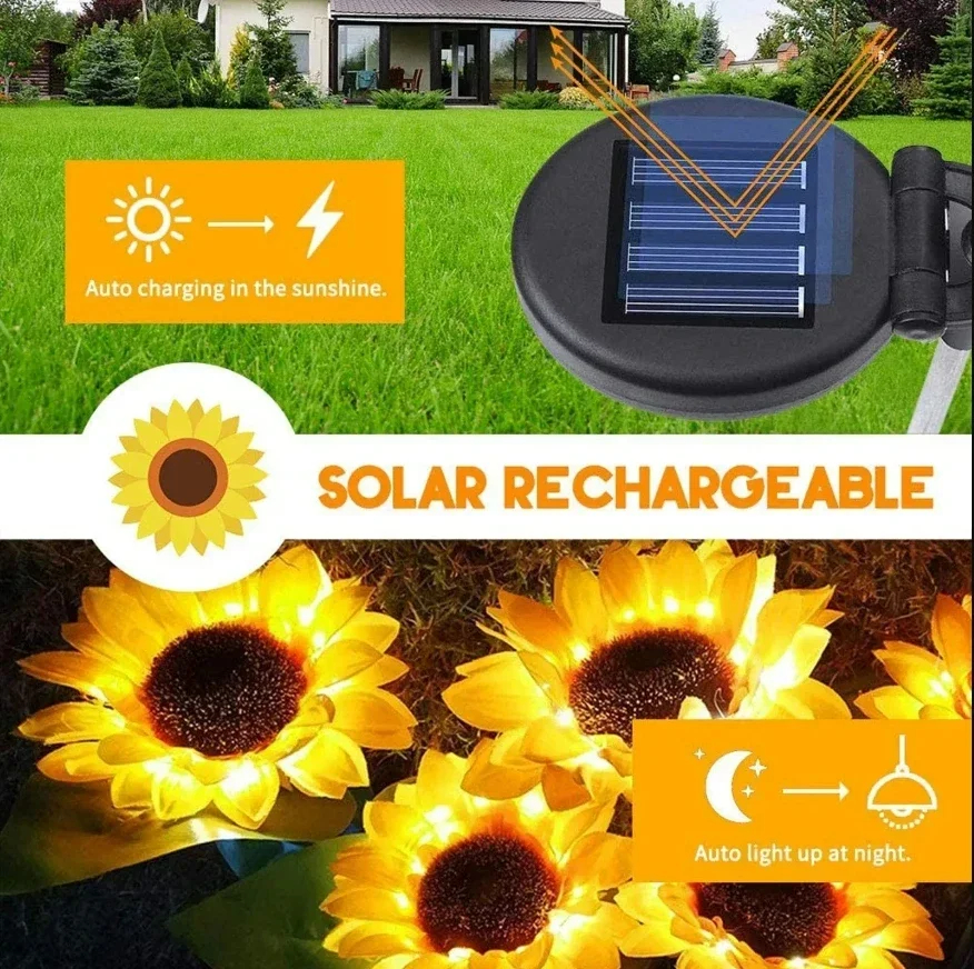 • Sunflower Solar LED Garden Light – Waterproof Outdoor Landscape Decoration Light